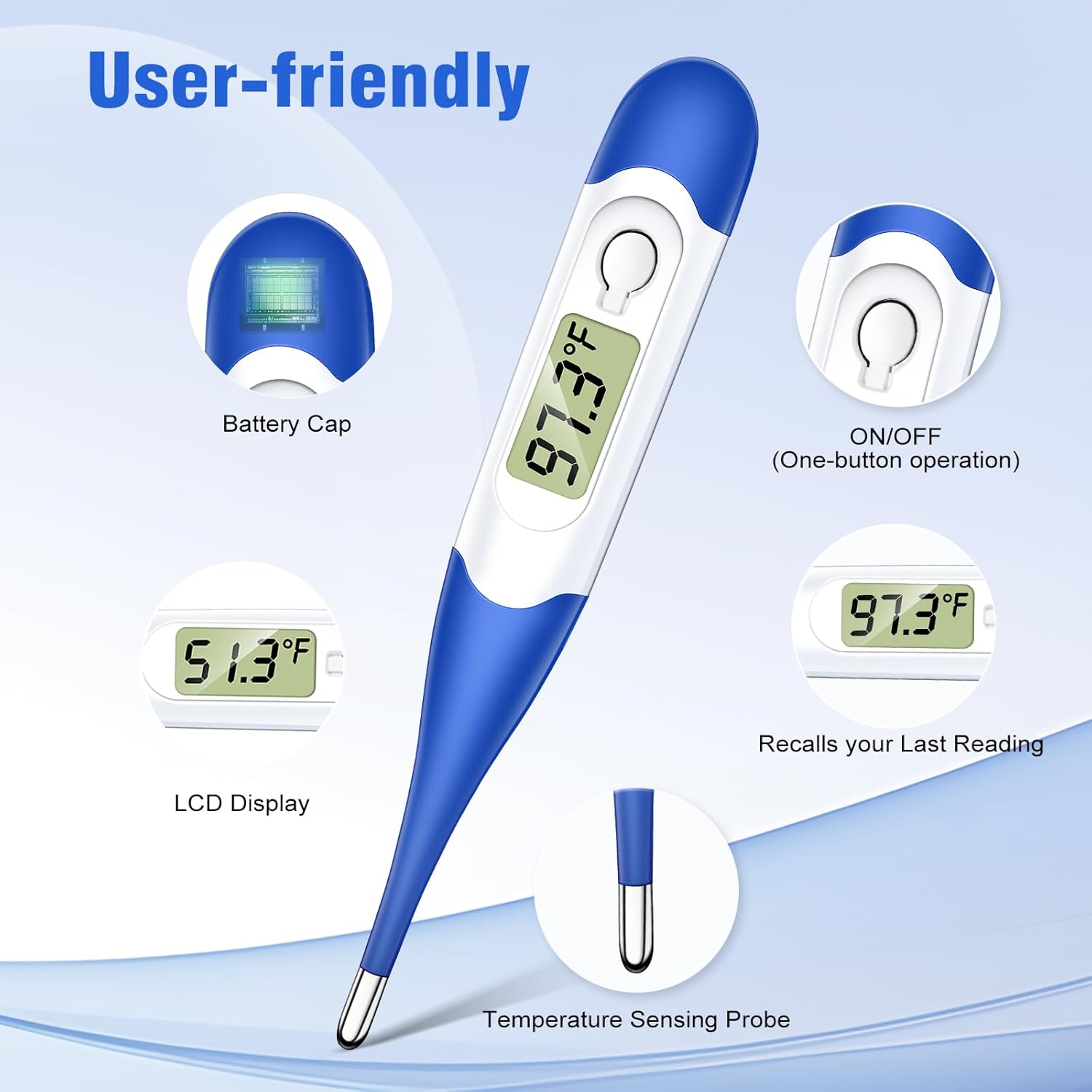 Person-Pleasant Options: The LCD display shows temperature readings clearly, whereas the beeper alarm alerts you when measurement is full.CHENGYOUDE oral thermometer is straightforward to learn with clear show, Benefit from the comfort of reminiscence show, auto shut-off, and simple switching between ℉ and ℃.