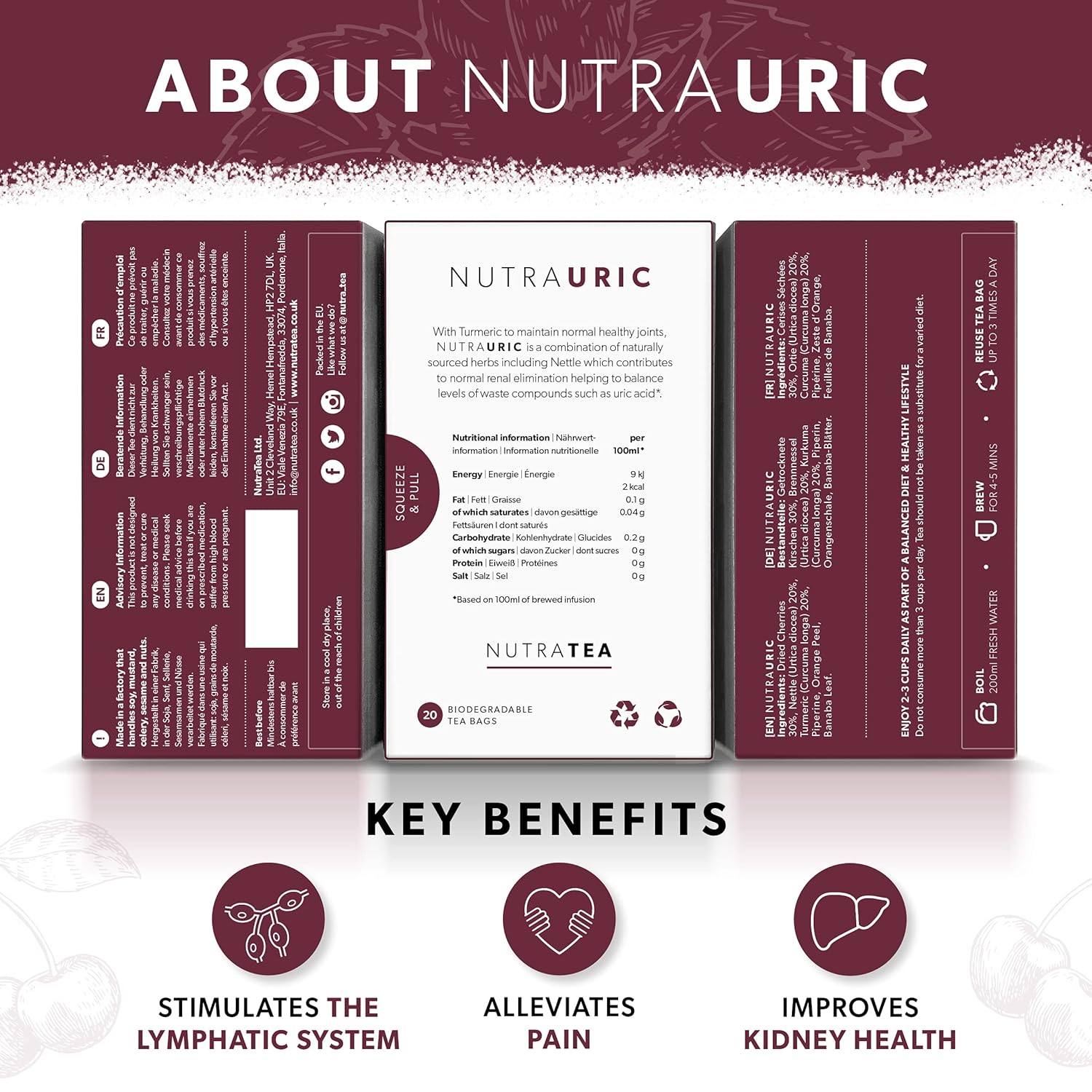 NUTRAURIC – Uric Acid Cleanse and Kidney Assist – Kidney Cleanse Tea – Consists of Cherry, Nettle & Turmeric – 20 Enveloped Tea Baggage – by Nutra Tea – Natural Tea
